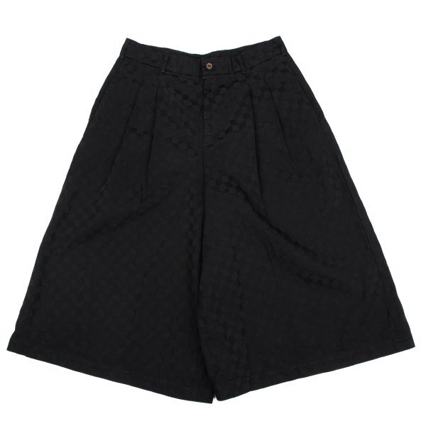 > コムコム コムデギャルソンCOMME des GARCONS ポリジオメトリックジャガードツータックワイドハーフパンツ 黒S 【レディース】