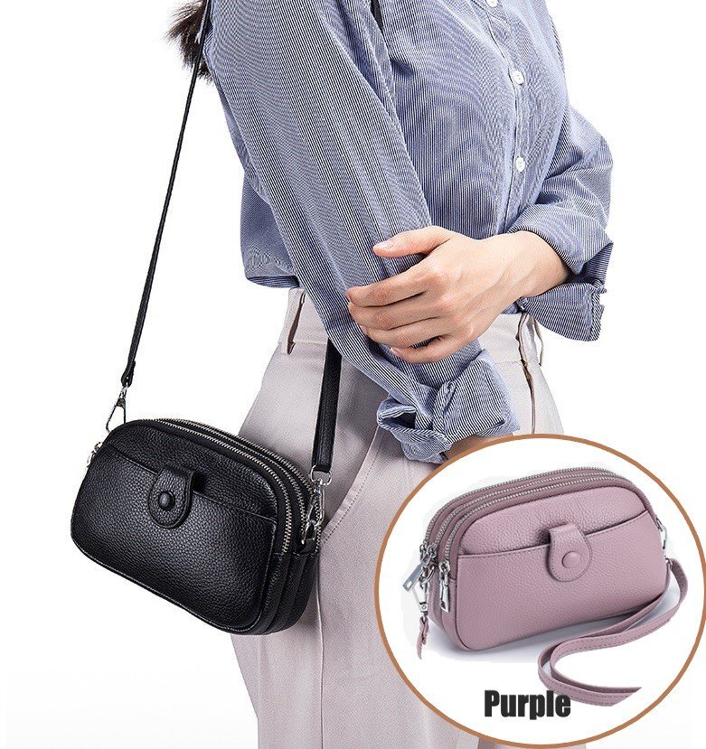 - ショルダーバッグ 牛皮 パープル レザー シンプル 小物 スマホ カード 鍵 たばこ など n529