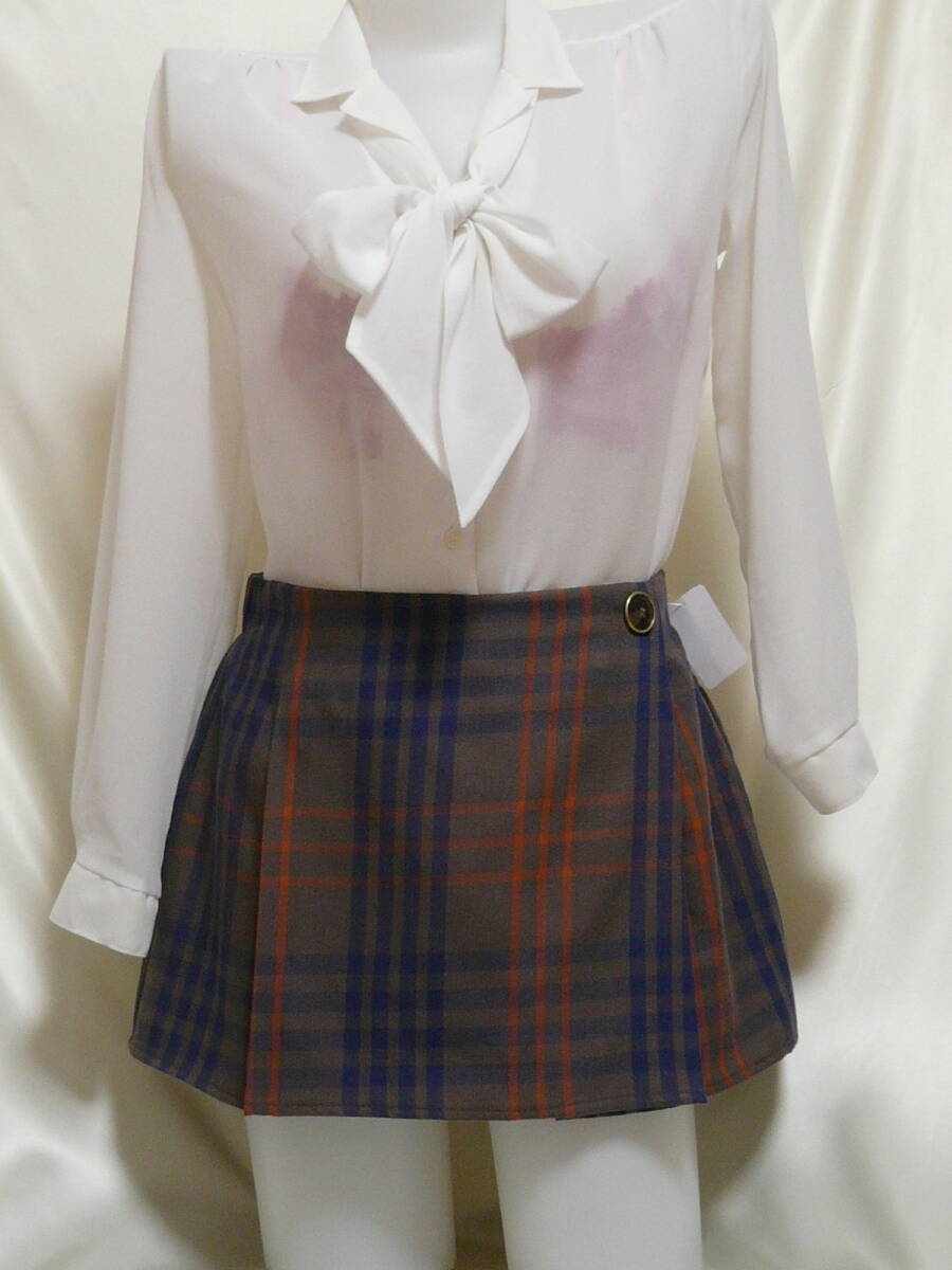 - ♪♪茶色地チェックのマイクロミニ☆シックにカジュアル☆飾りボタン^^♪♪