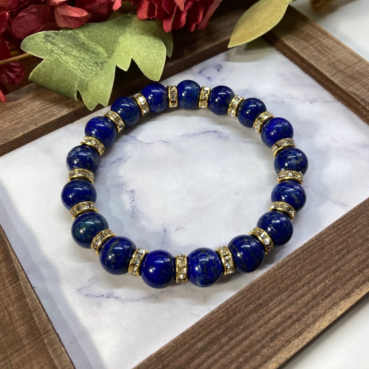 > ラピスラズリ パワーストーン ブレスレット 10mm 天然石ブレス (ゴールド) 数珠ブレス メンズ・レディース 男性 女性 幸運 幸せ♪