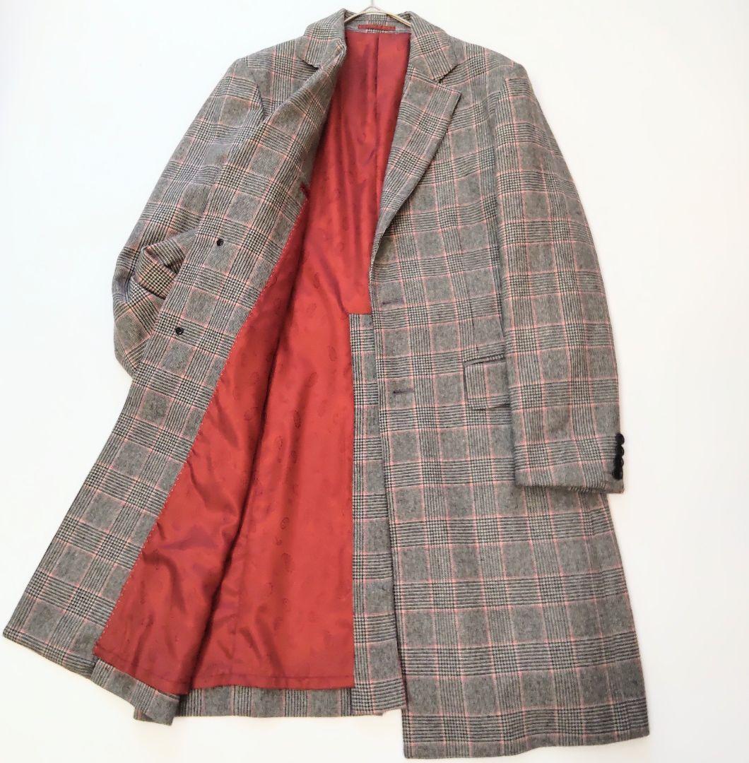 - 美品 クリスチャンオラーニ グレンチェック カシミヤ混 ロング チェスターコート グレー系 通勤 L
