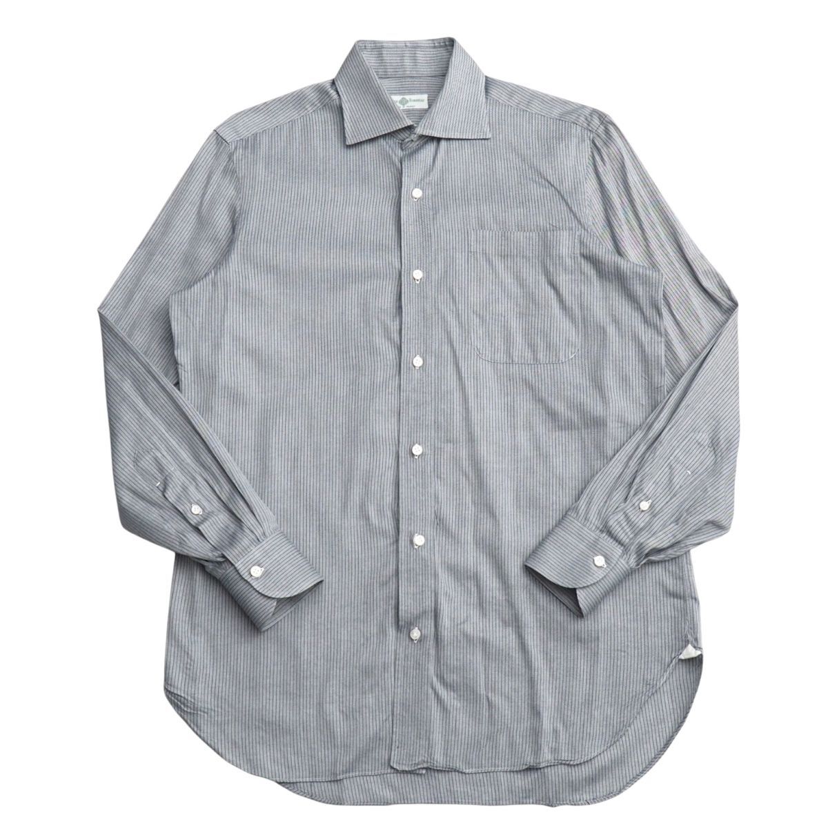 - TJ5901▽イタリア製 ルイジボレッリ/LUIGI BORRELLI メンズ15/38 ストライプシャツ ワイドカラーシャツ グレー×ネイビー系