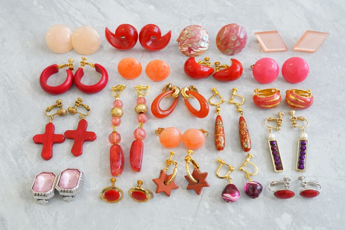 > C748 赤/ピンク/紫色系 海外製など ヴィンテージ イヤリング 20点セット アクセサリー 両耳揃い 大量 まとめて おまとめ まとめ売り