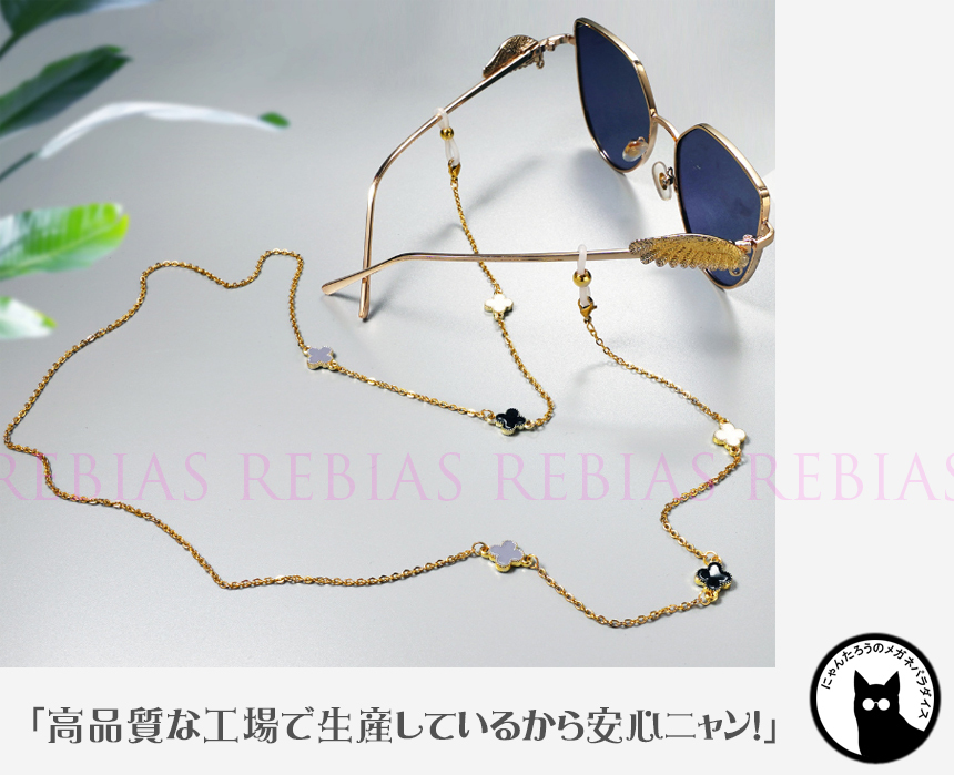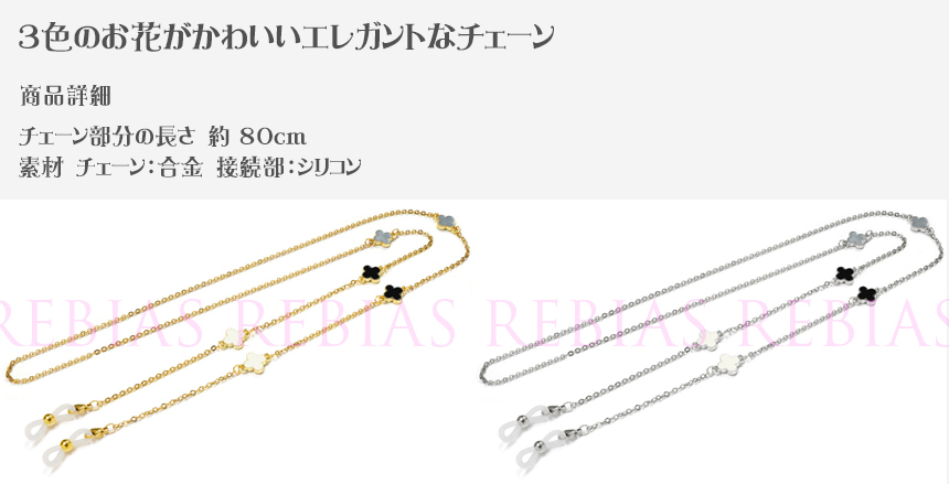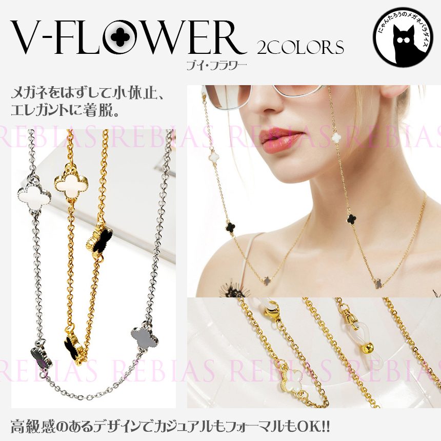 - 送料無料 メガネチェーン Vフラワー 【ゴールド】 花形 クローバー フォーマル 清楚 眼鏡 サポート