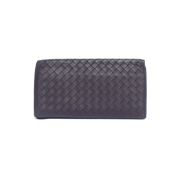 > BOTTEGA VENETA ボッテガ・ヴェネタ イントレチャート レザー 2つ折り 長財布 ブラック【送料無料】中古品 used AB
