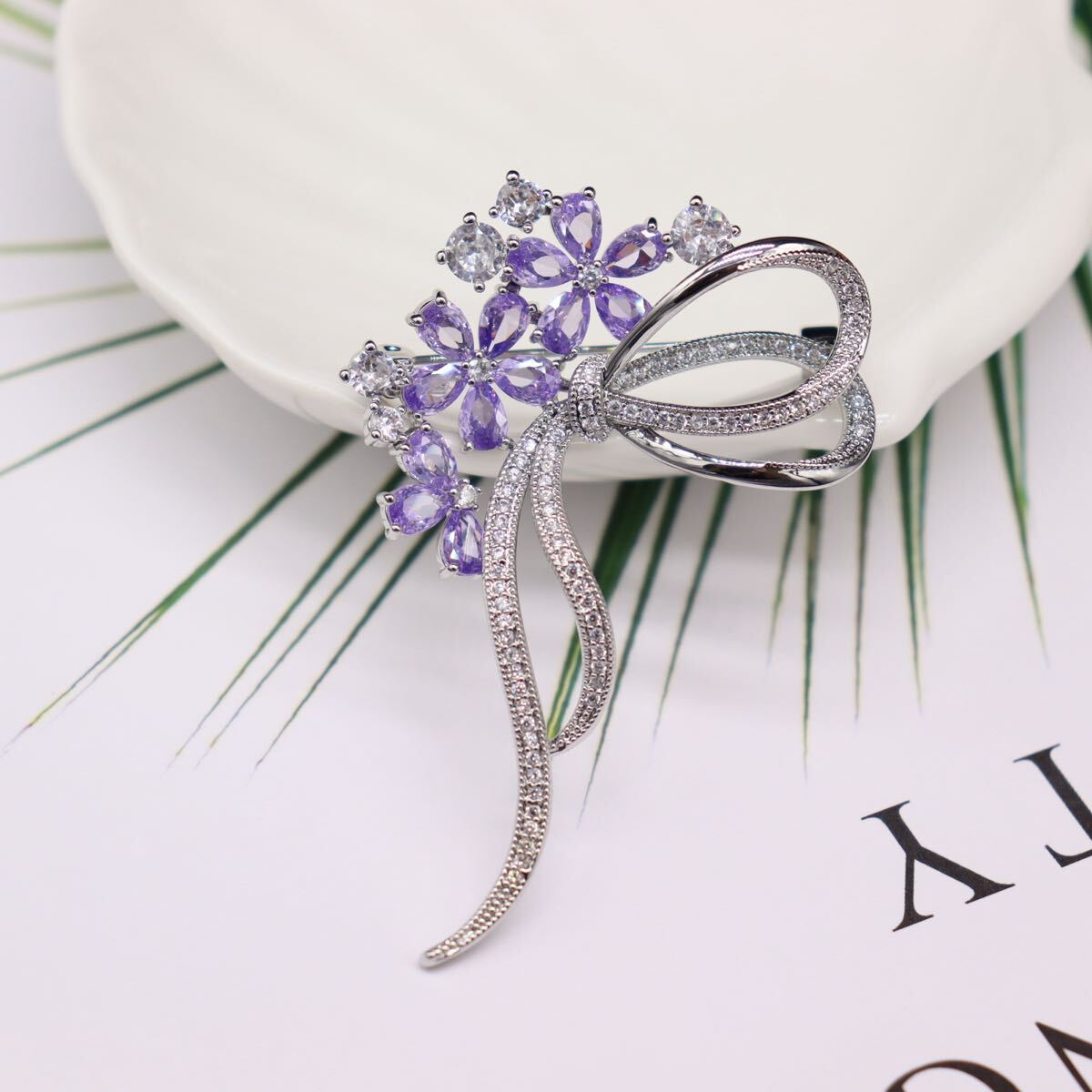 - 紫クリスタル桜ブローチ高級感のジルコンダイモンド花コサージュ結婚式卒業式入学式面接お誕生日記念日母の日クリスマス贈り物