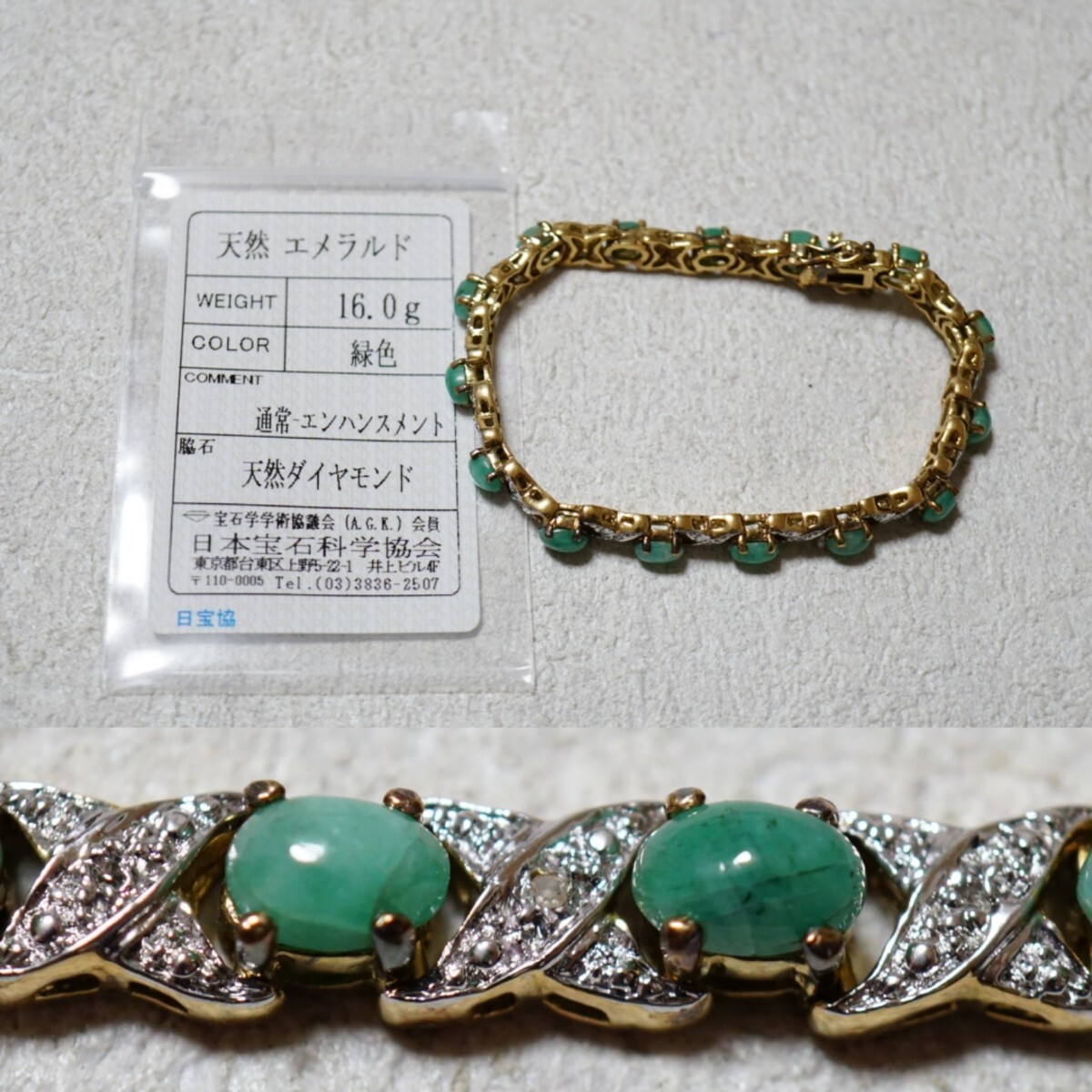 > 320 天然エメラルド ダイヤモンド ブレスレット ヴィンテージ アクセサリー SILVER 925刻印 天然石 宝石 カラーストーン ソーティング付き