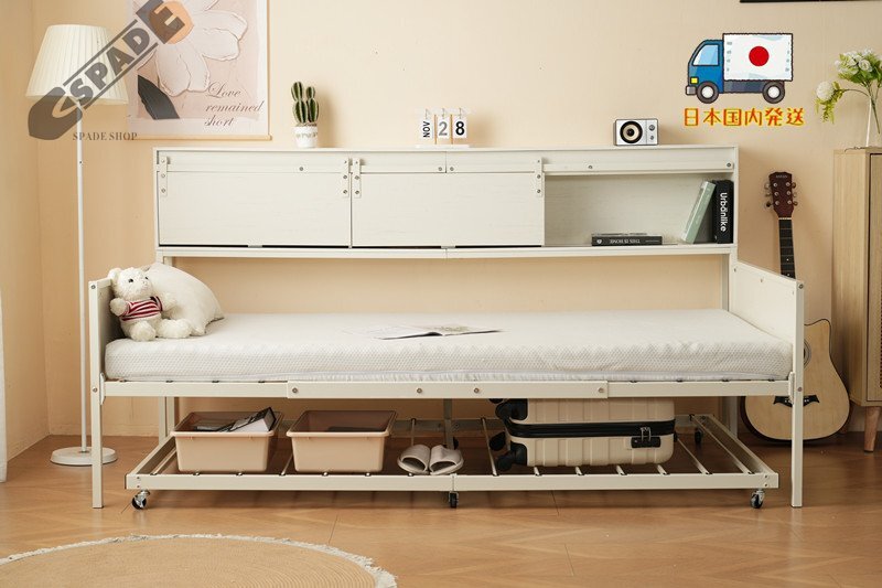 - 【国内発送】親子ベッド 二段ベッド 多段ベッド シングル コンセント付き 宮棚付き パイプベッド ホワイト ブラック シンプル 木 ウッド調