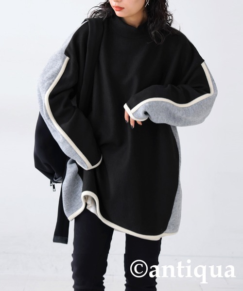 - 「antiqua」 長袖ニット FREE ブラック レディース