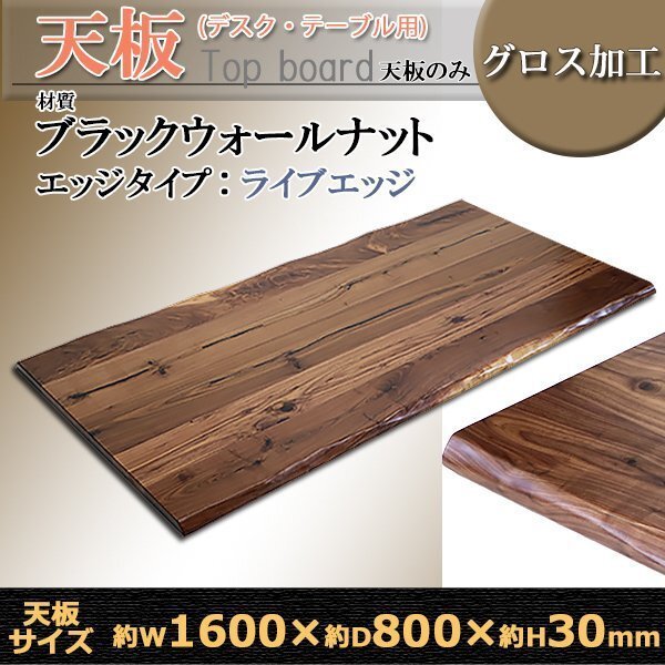 > 送料無料 天板 デスク テーブル 天板のみ ブラックウォールナット材 W1600×D800×H30mm ブラックウォールナット ライブエッジ グロス加工