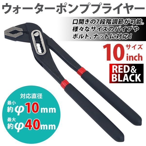 - 送料無料 ウォーターポンププライヤー WPプライヤー 溝付き 10インチ 10 対応直径最小約φ10mm 最大約φ40mm 口開き7段階調節 プライヤー