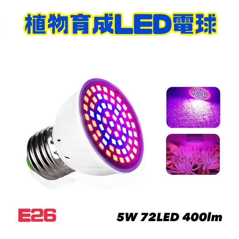 - 植物育成 LED電球 赤 青 LED E26口金 5W 72LED 【送料無料】観葉植物 多肉植物 成長促進 室内栽培 水槽 アクアリウム 熱帯魚 海水魚