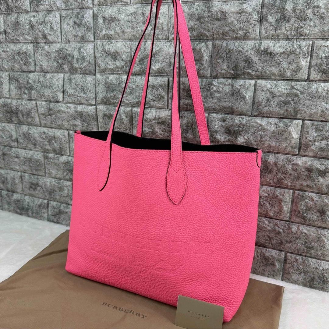 - 美品 BURBERRY Embossed ネオンピンク トートバッグ