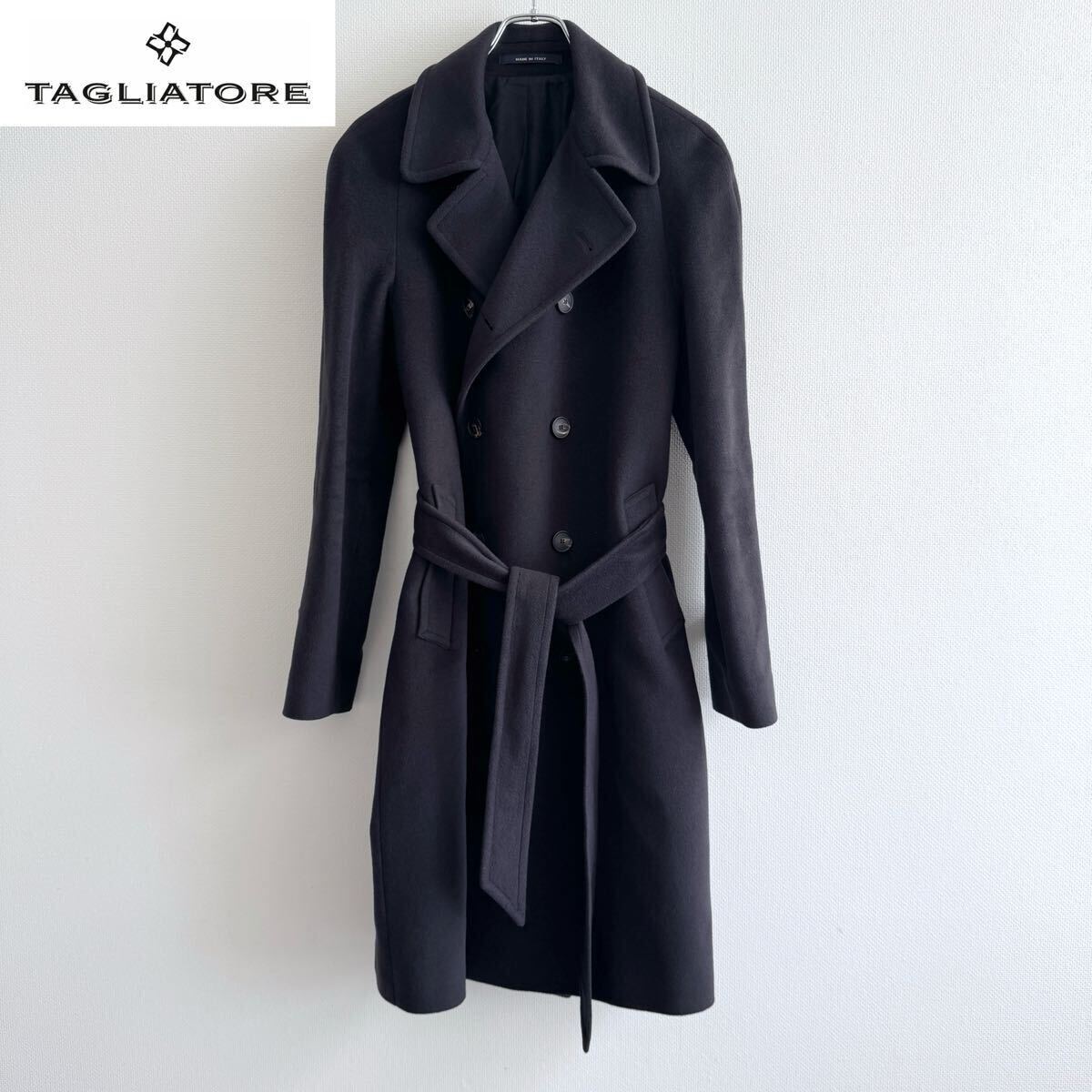 > 美品 定価18万 TAGLIATORE RIPA カシミヤ100% ダブルベルテッドコート チェスター トレンチコート ネイビー 46 M イタリア製 タリアトーレ