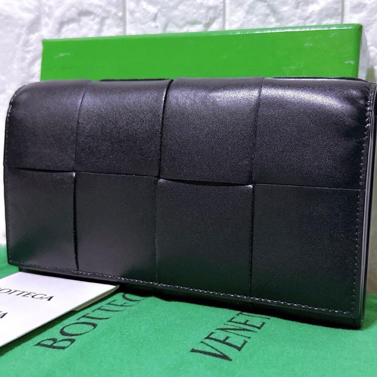 > 現行 RFID ICチップ 極美品【至高の逸品】BOTTEGA VENETA ボッテガヴェネタ 長財布 二つ折り フラップ カセット ブラック 小銭入れなし