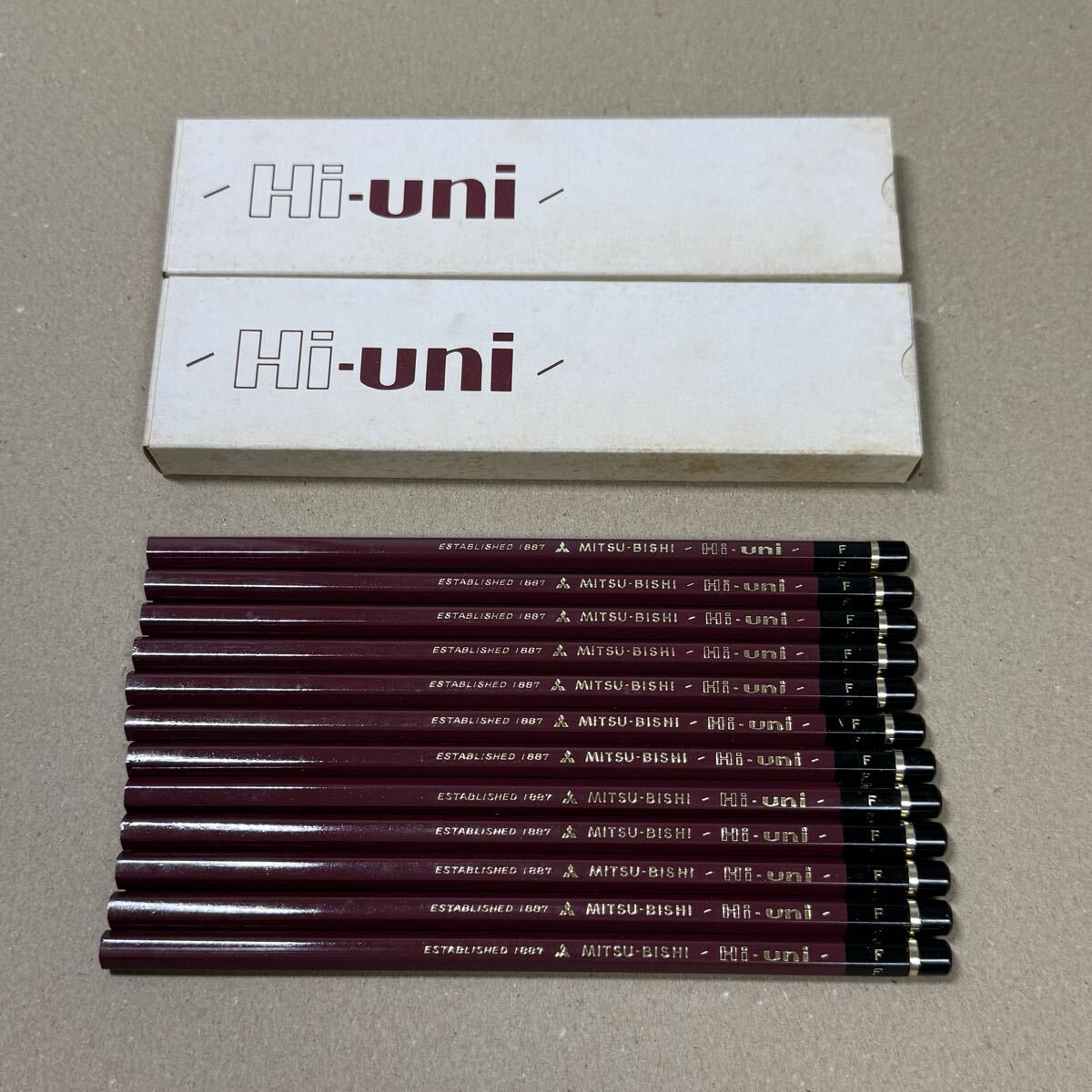 - 新品 廃盤 MITSUBISHI 三菱鉛筆 Hi-uni ハイユニ 鉛筆 えんぴつ 旧型 白丸 F 2ダース 24本セット 箱付き 昭和レトロ vintage