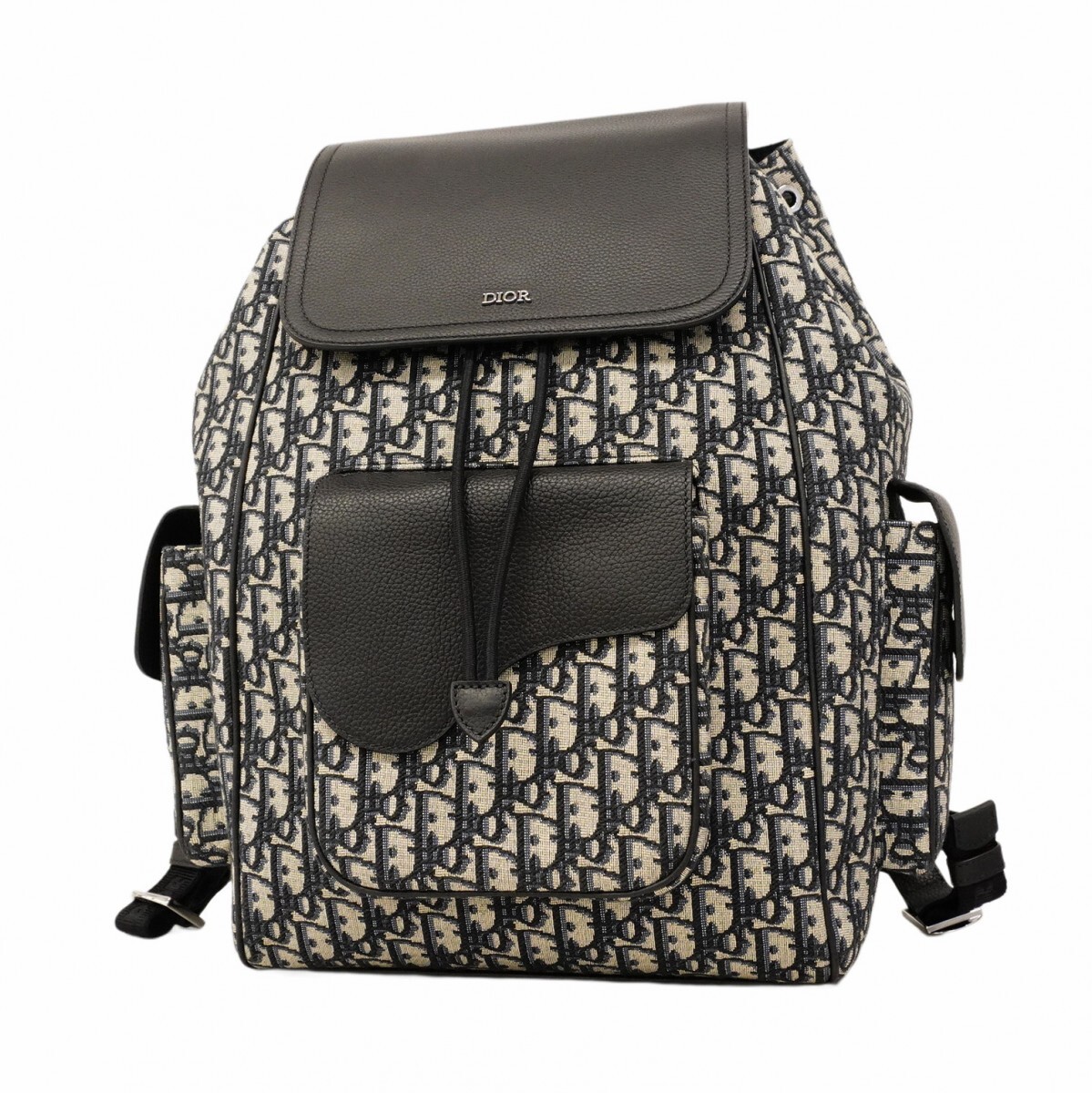 - ★最終価格【5mb2338-h】クリスチャンディオール リュック・デイパック オブリーク キャンバス レザー ネイビー ブラック シルバー金具