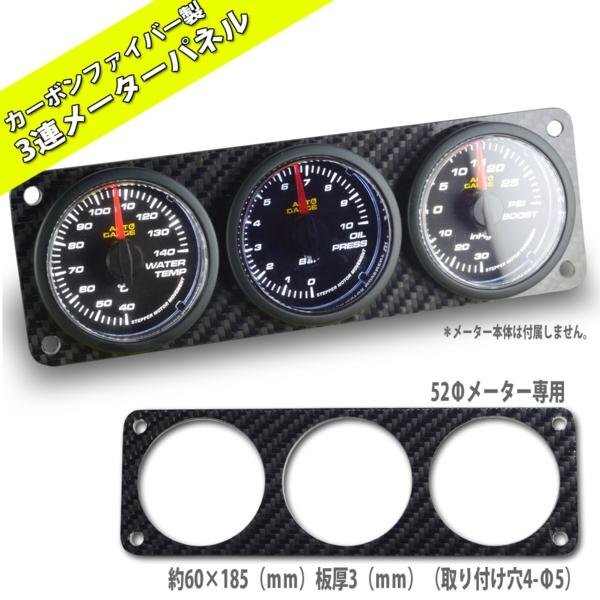- 【送料無料】 追加 メーター用 1dinサイズ カーボンファイバー製 3連メーターパネル 52Φ 185×60×3 カーボン製 52mm ドレスアップ