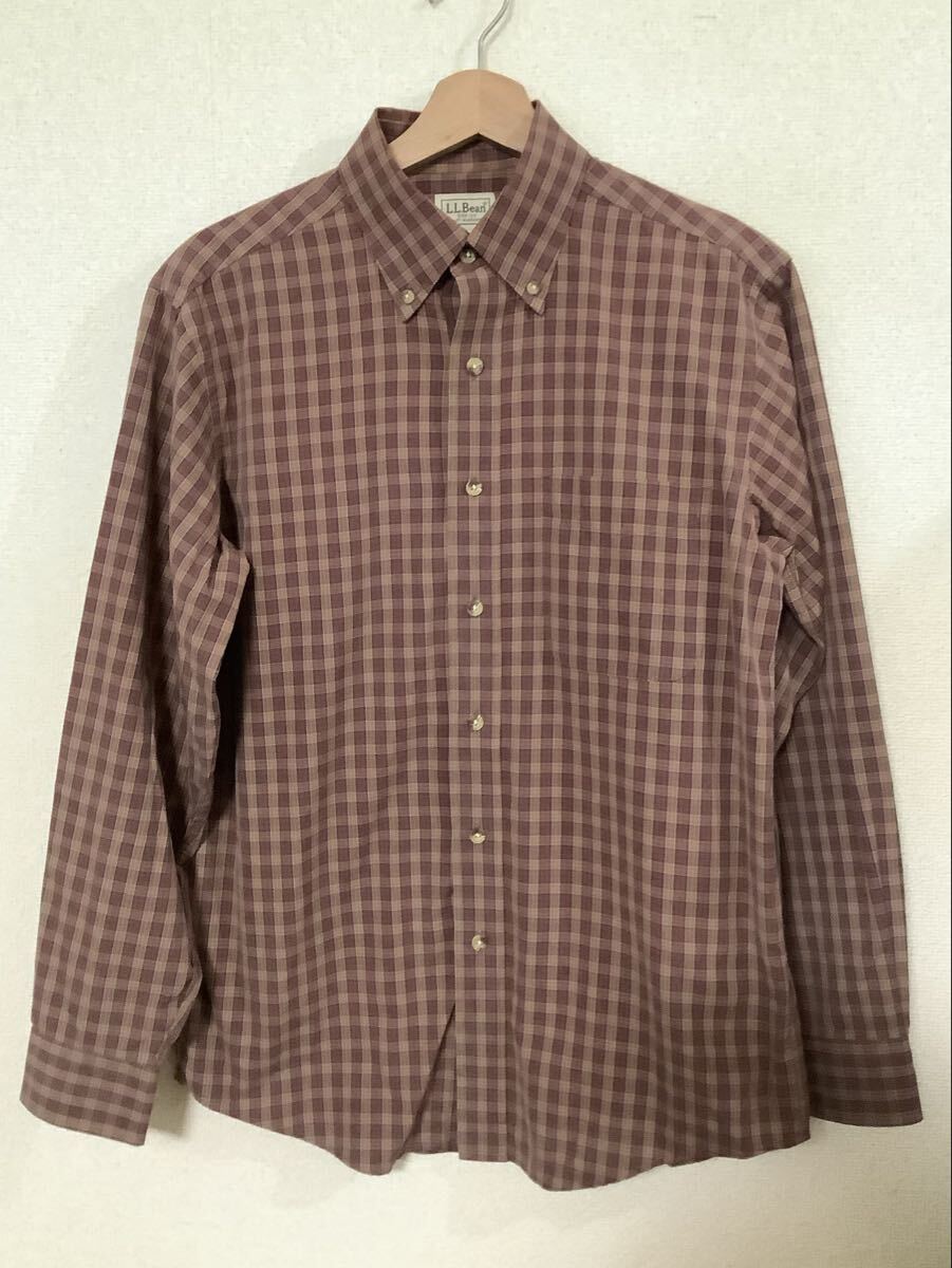 > L.LBEAN エルエルビーン チェック ボタンダウンシャツ コットンシャツ ブラウン アウトドア カジュアル メンズ S