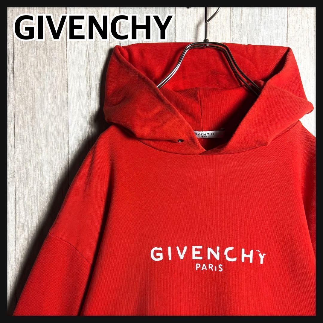 - 【希少カラー・美品】ポルトガル製 GIVENCHY ジバンシー ヴィンテージセンターロゴ フーディー スウェットパーカー オレンジ 朱色 M大きめ
