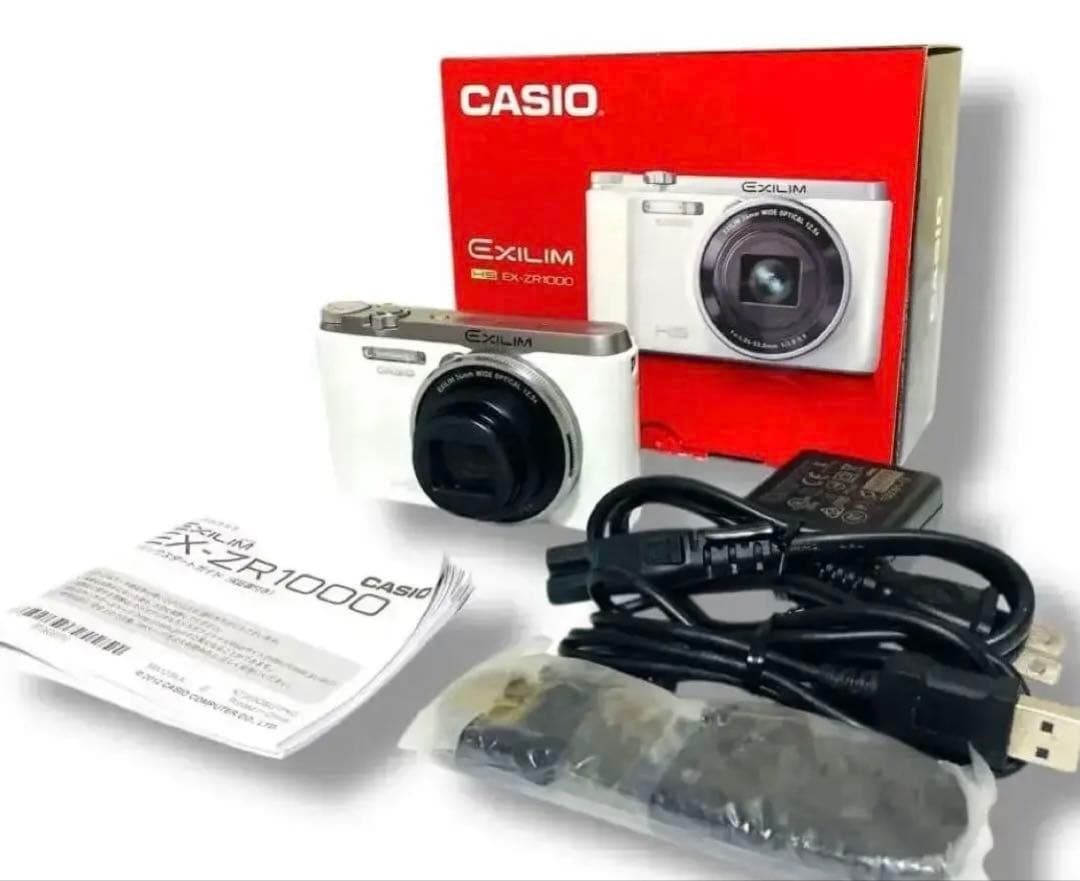 - 動作品 箱 美品 CASIO EXILIM EX-ZR1000 ホワイト コンデジ カシオ コンパクト デジタル カメラ 白 エクシリム チルト 液晶 HIGH SPEED