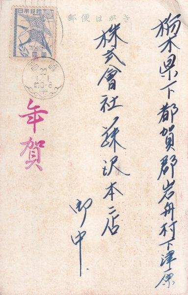 - 初雁4円貼年賀状 機械印 高崎 30.1.1 前0-8 エンタイア