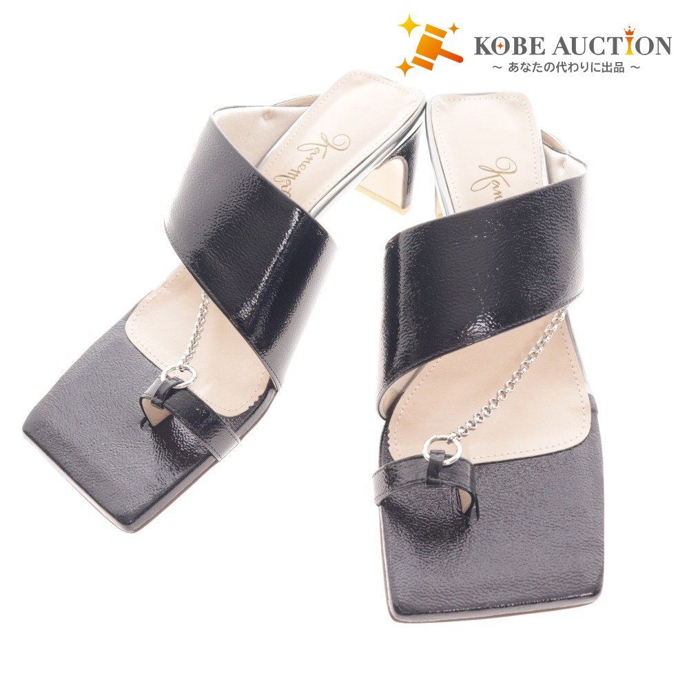 - ■ 銀座かねまつ サンダル AP-220115 靴 トングサンダル スクエアトゥ メタルチェーン レディース 24.5 ブラック 箱付き 未使用