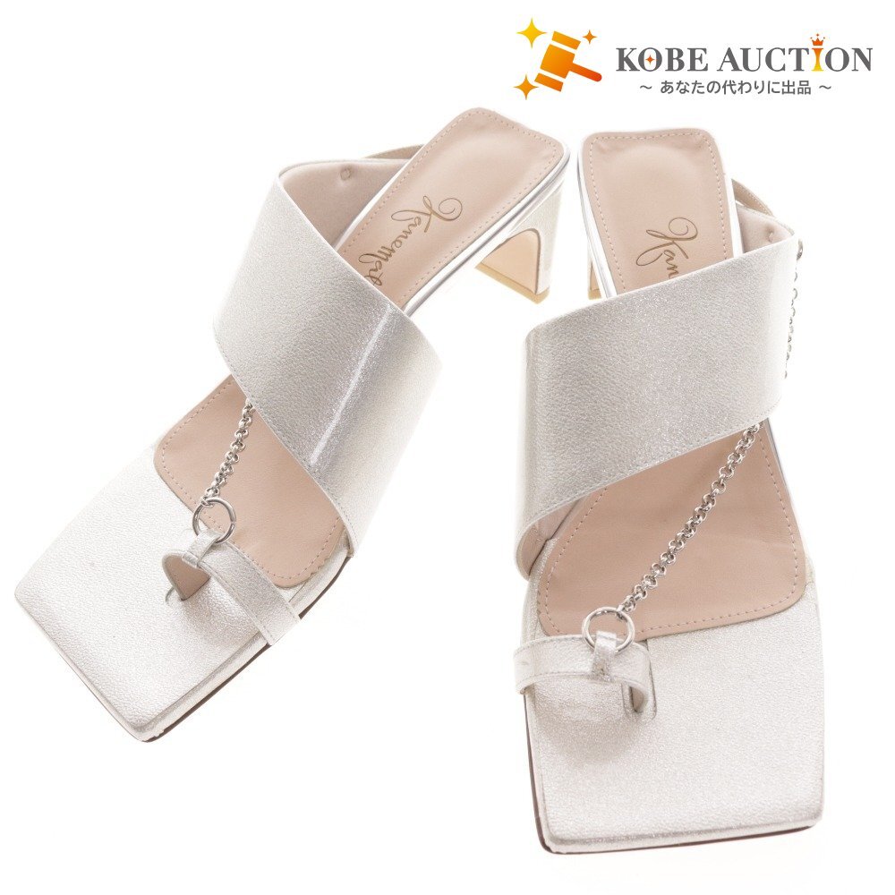 > ■ 銀座かねまつ サンダル AP-220115 靴 トングサンダル スクエアトゥ メタルチェーン レディース 24.5 シルバー 箱付き 未使用