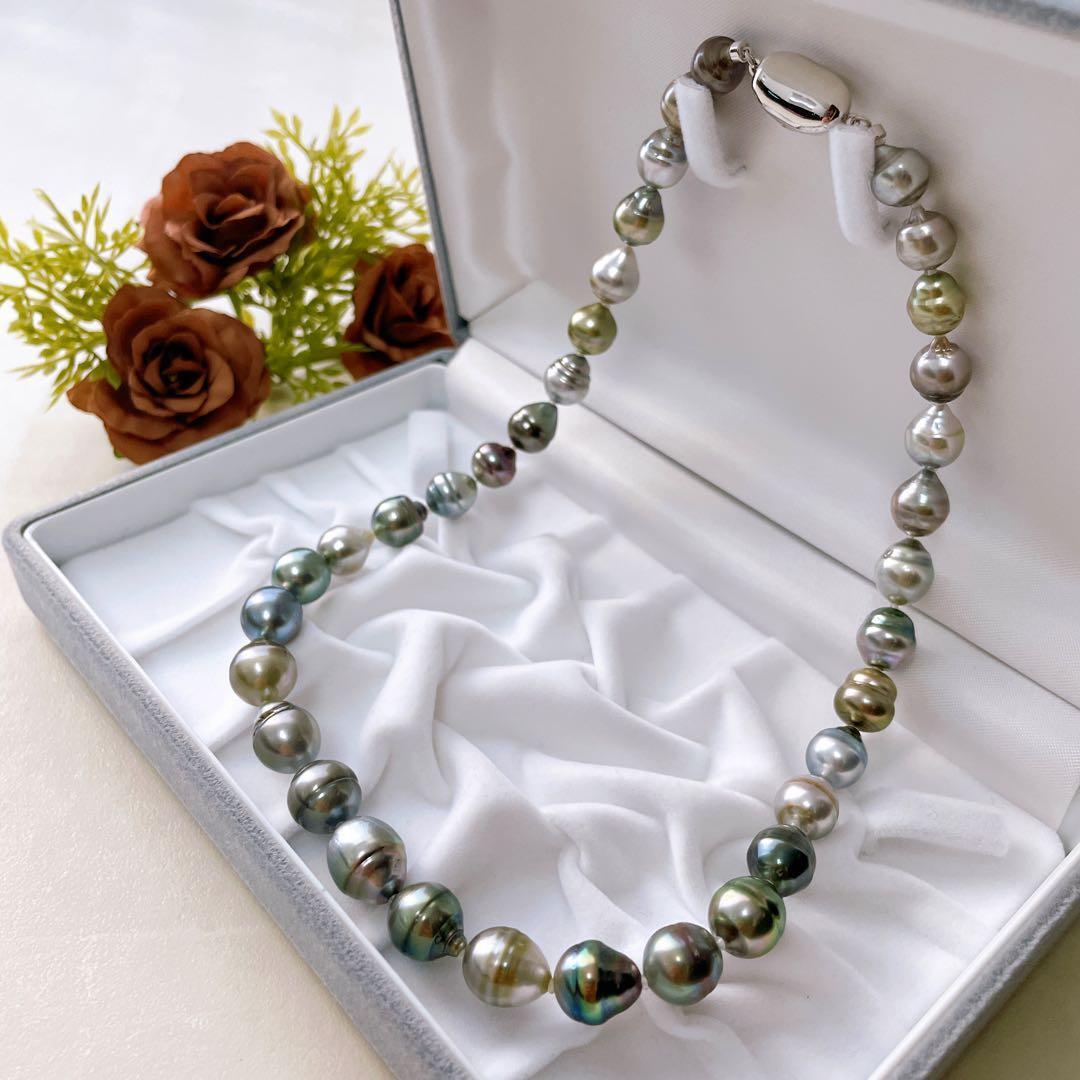 - 神秘的★本真珠★南洋黒蝶真珠 パール マルチカラー バロックネックレス 留め具SILVER ブルーグレー系