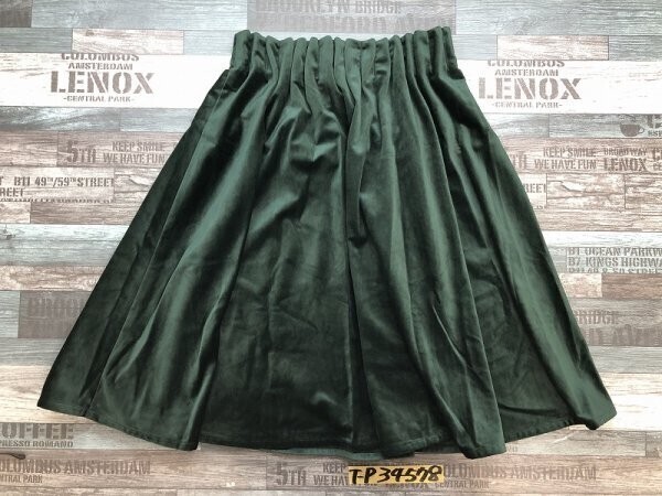- レディース ベルベット フレア イージー ミディスカート ポリエステル M 緑