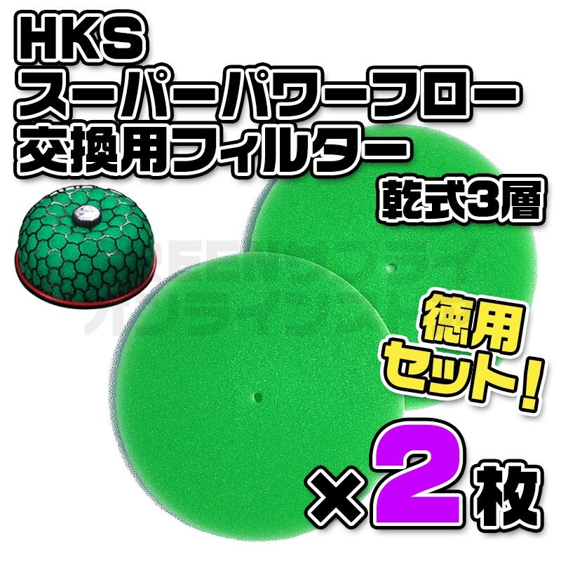 - スーパーパワーフロー 用 HKS 交換フィルター Φ200パイ グリーン 2枚