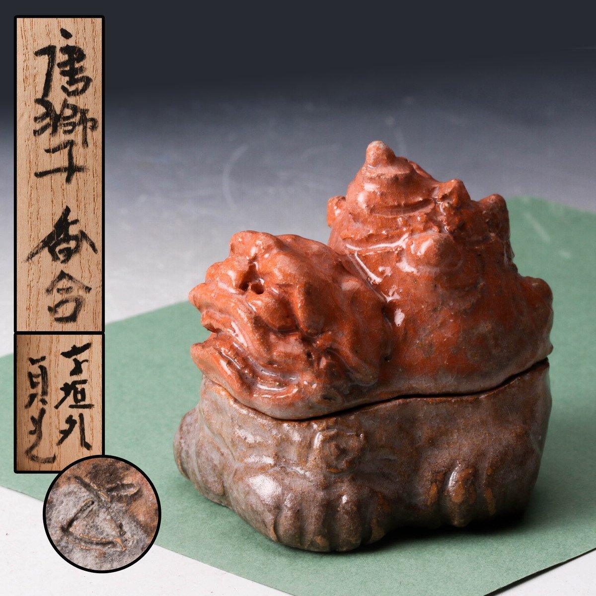 【佳香】杉本貞光 寺垣外 唐獅子香合 共箱 栞 茶道具 本物保証拍卖