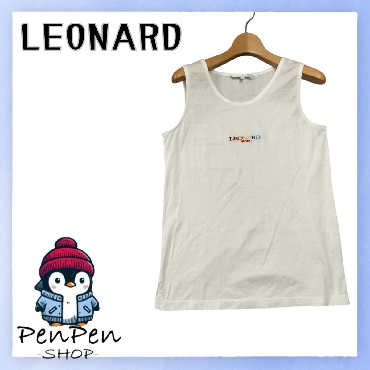 - LEONARD SPORT レオナール スポーツ レディース タンクトップ ノースリーブ コットン 綿100% ホワイト 白 Lサイズ 日本製 上品 夏用 高級