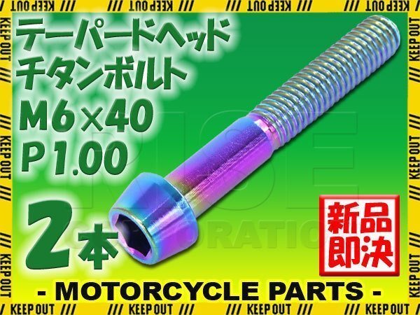 > メール便OK!M6×40 P1.00 チタンボルト 2本セット 6mm 40mm ピッチ1.00 焼き色 テーパーボルト キャップボルト クランクケース バイク