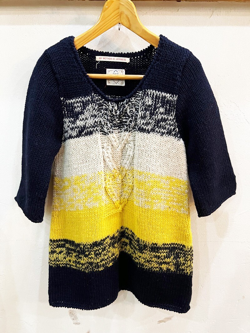 - 2183★ネパール製 My Mother is Japanese ハンドニット7分袖チュニック ウール セーター ニット レディース Mサイズ程度 手編み USED ★