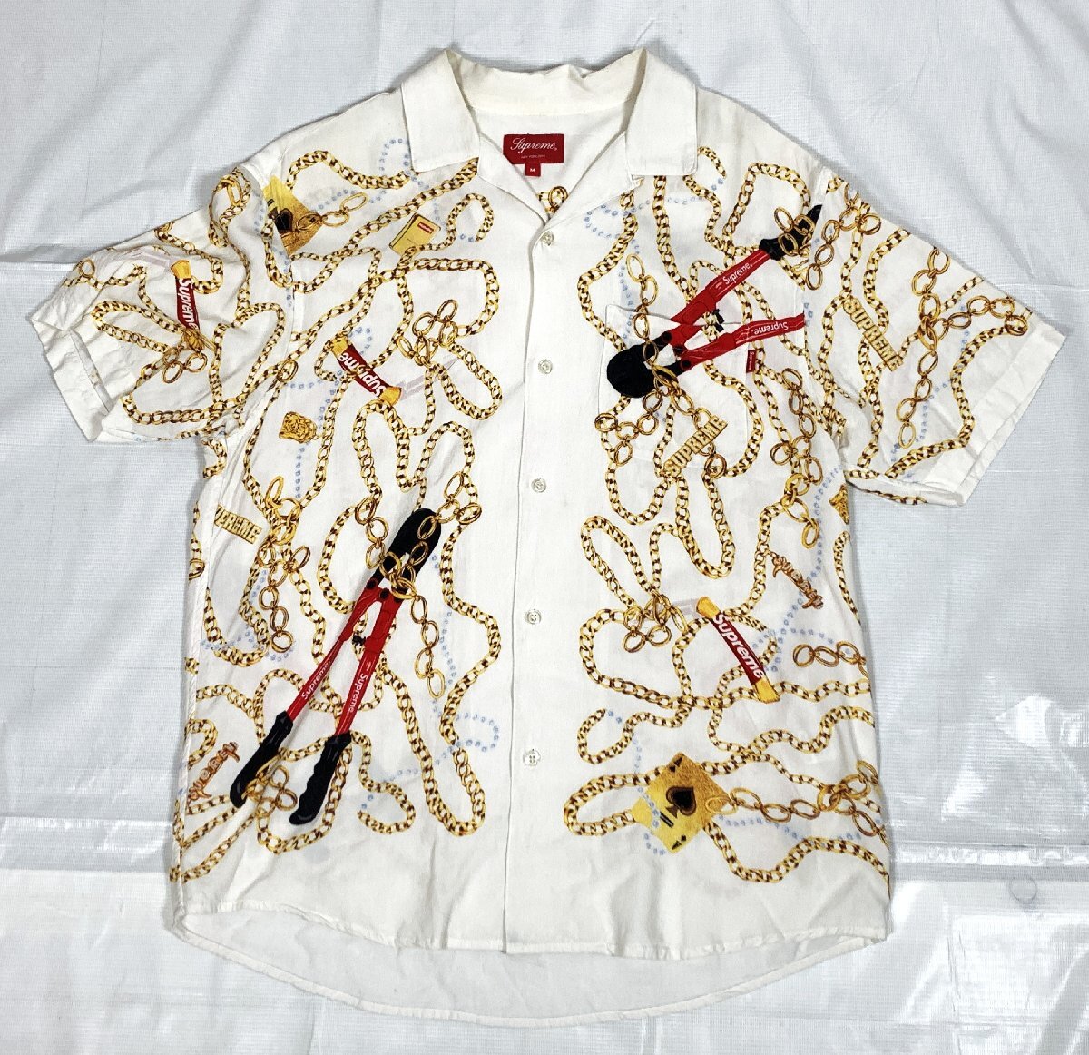 > Supreme シュプリーム Chains Rayon S/S Shirt サイズ:M 半袖シャツ チェーンプリント ☆良品☆[663-0929-E11]