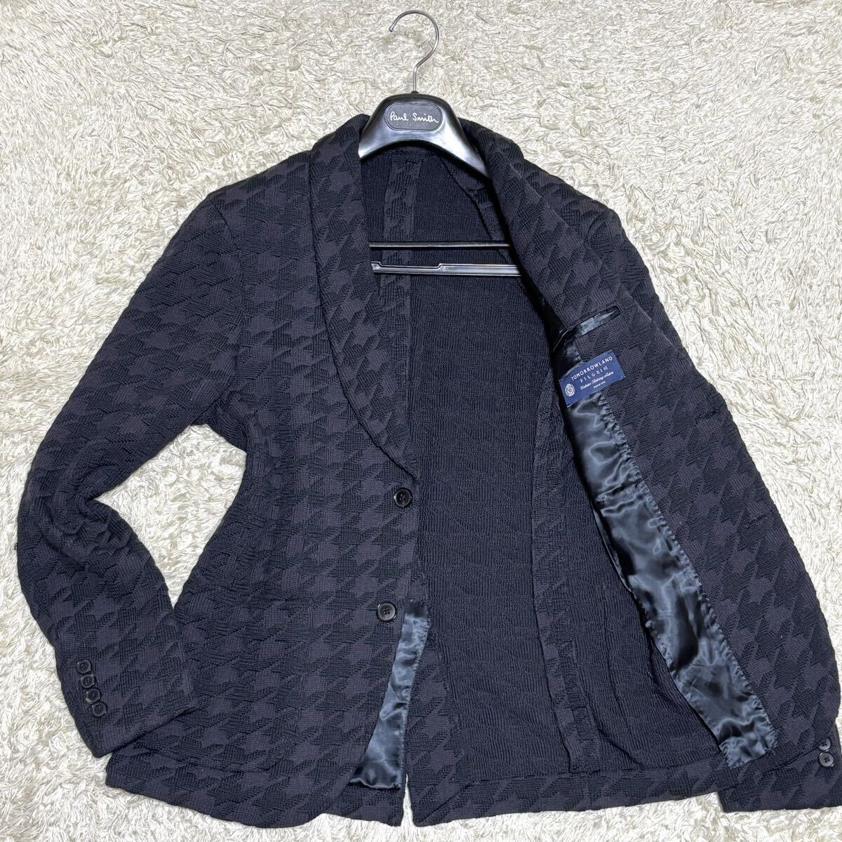 > 極美品●入手困難 PILGRIM トゥモローランド ピルグリム ニット ジャケット ストレッチ アンコン 千鳥格子 テーラード メンズ TOMORROWLAND