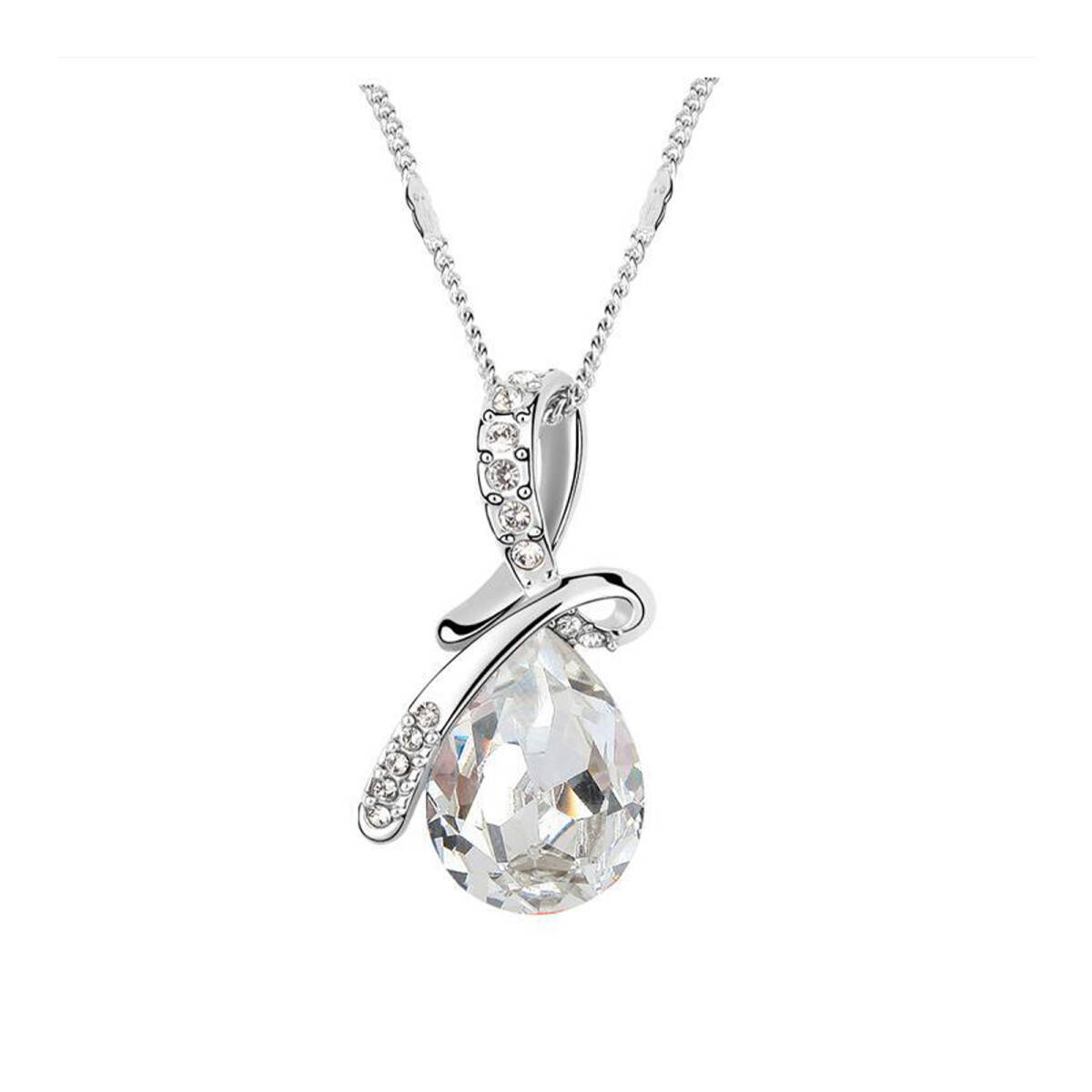 - 天使の涙水滴ペンダント 水晶ネックレス 鎖骨ネックレス ダイヤモンドアクセサリー 首飾りアイテム(ホワイト);J58;