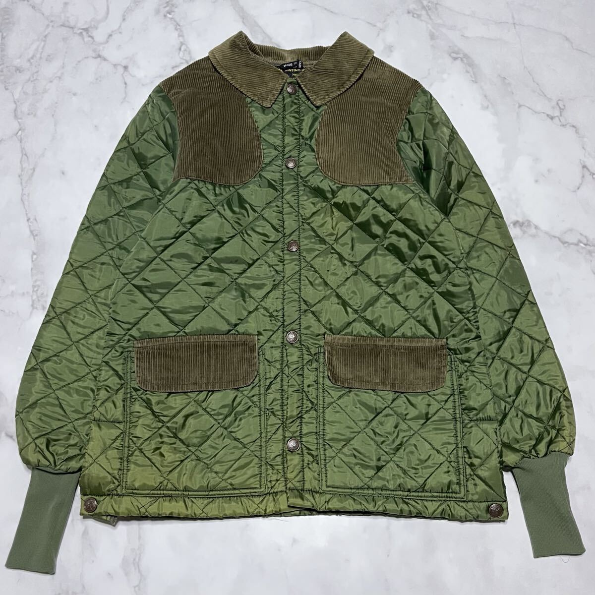 > ハンティングワールド HUNTING WORLD イングランド製 オリーブ コーデュロイ 切替 エルボーパッチ キルティングジャケット Mサイズ