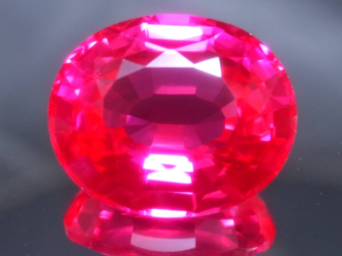 - 38.13ct 新品・特大サイズ・超ギラギラの凄いテリ・ブラックライトでビビッドピンク発色効果・合成ピンクサファイヤ