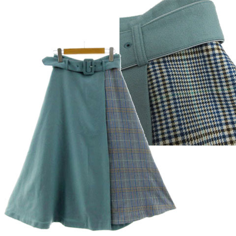 - ビアッジョブルー Viaggio Blu チェックプリントラップフウスカート 2611-88017 ロング丈 ベルト付き 起毛 グリーン系 マルチカラー 2