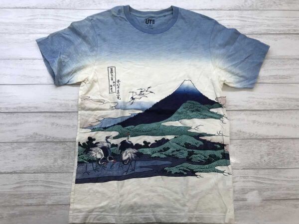 - ユニクロ UNIQLO UT ジャパントラディション 葛飾北斎 富嶽三十六景 相州梅沢左 富士山 鶴 ホクサイブルー 和柄 半袖Tシャツ 綿100% M 白青