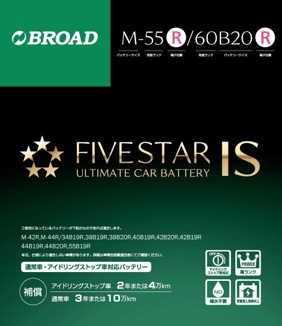 > M-55R/60B20R FIVESTAR IS ファイブスター IS アイドリングストップ車対応ノーマル車にも使用可能 送料無料(沖縄・離島・北海道は除く)