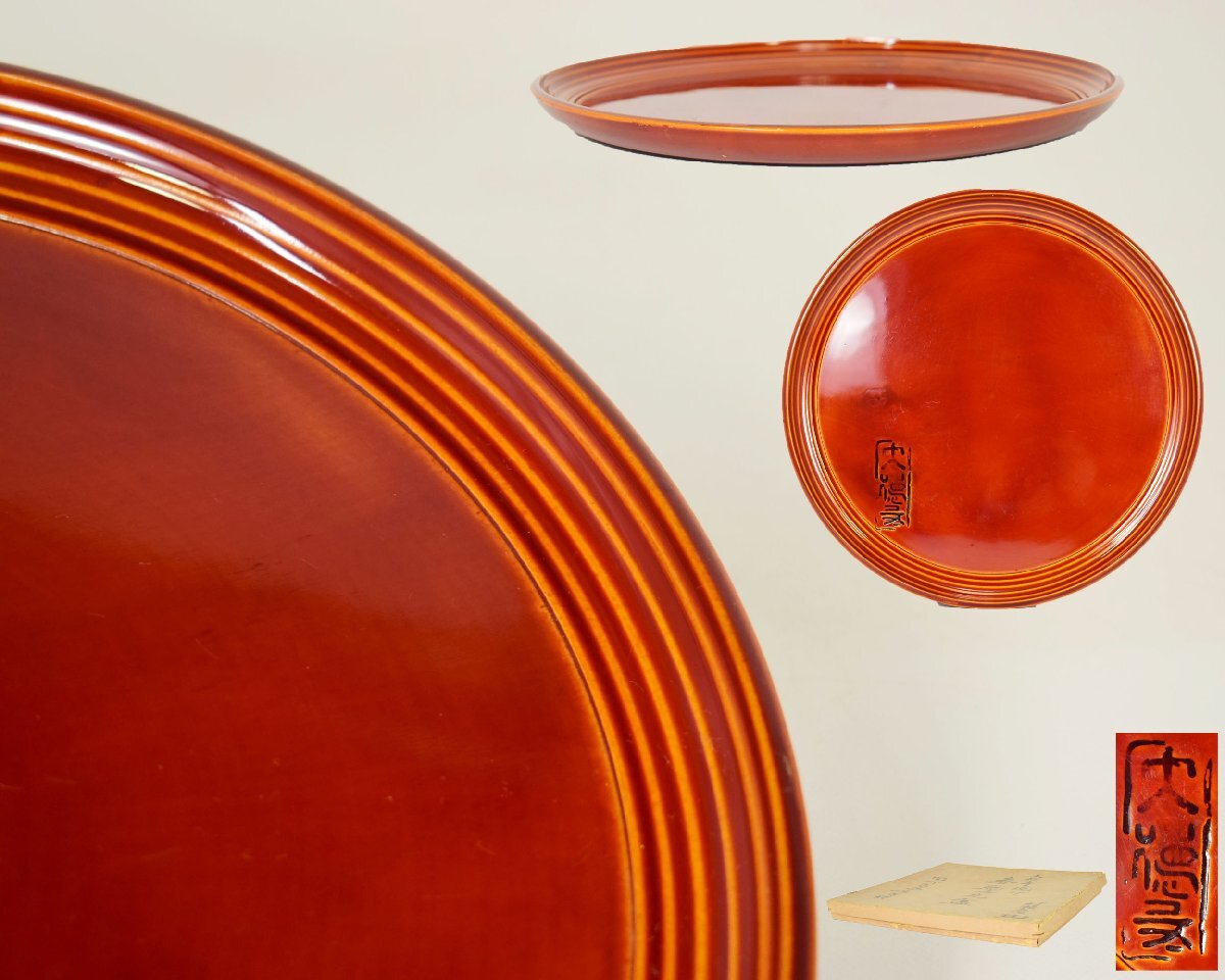 春慶塗 大徳寺焼印入 丸盆で御座います。