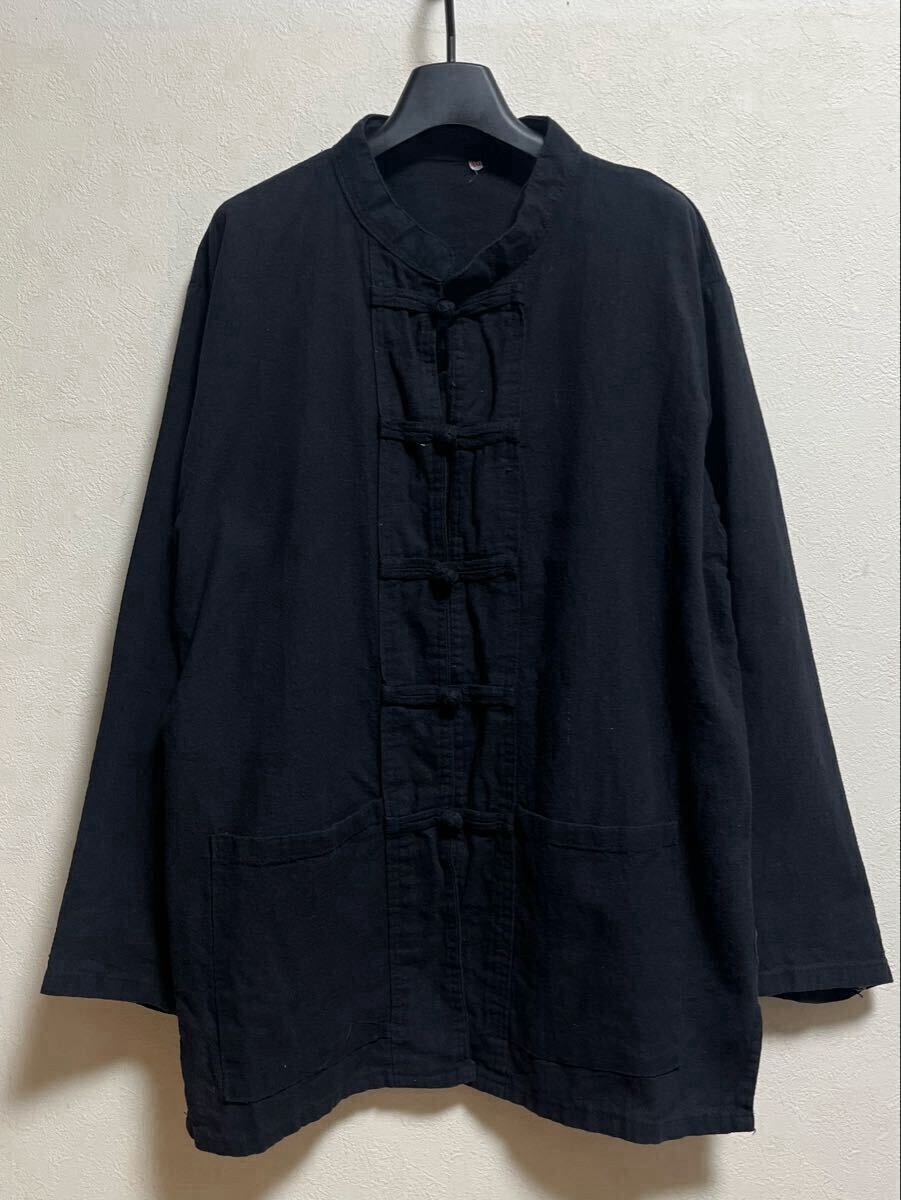 > フレンチチャイナ ジャケット 40(L位)黒 カンフージャケット カバーオール ワーク ユーロ ヴィンテージ L'anti cher ランチシェール
