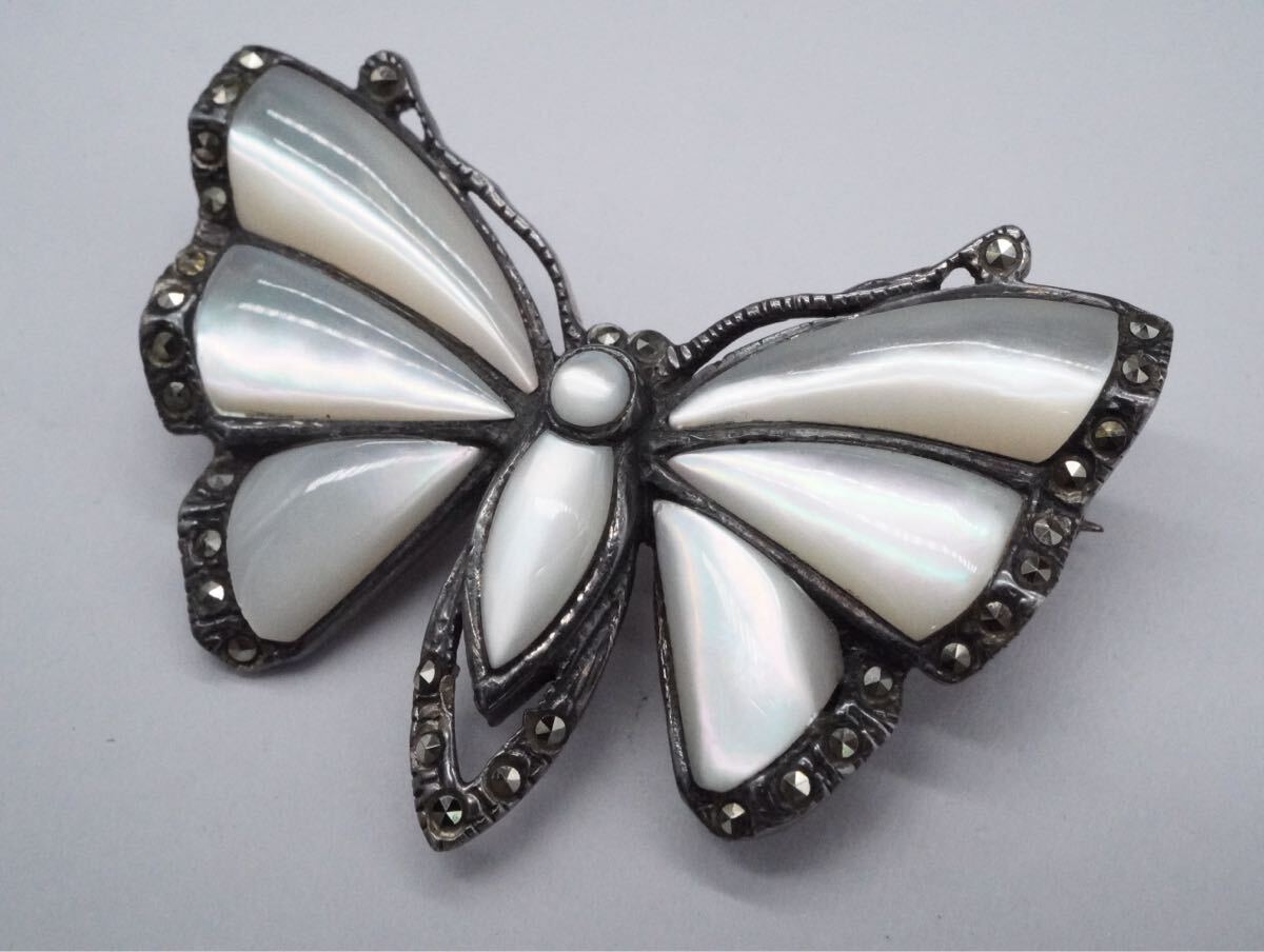 - 【73】マーカサイト シェル 貝 SILVER シルバー 925 蝶 ブローチ アクセサリー TIA
