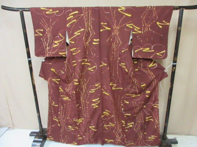 - 1円 中古 小紋 正絹 着物 縮緬 和服 和服 アンティーク 幾何学抽象 お洒落 高級 袷 身丈154cm 裄67cm【夢職】★