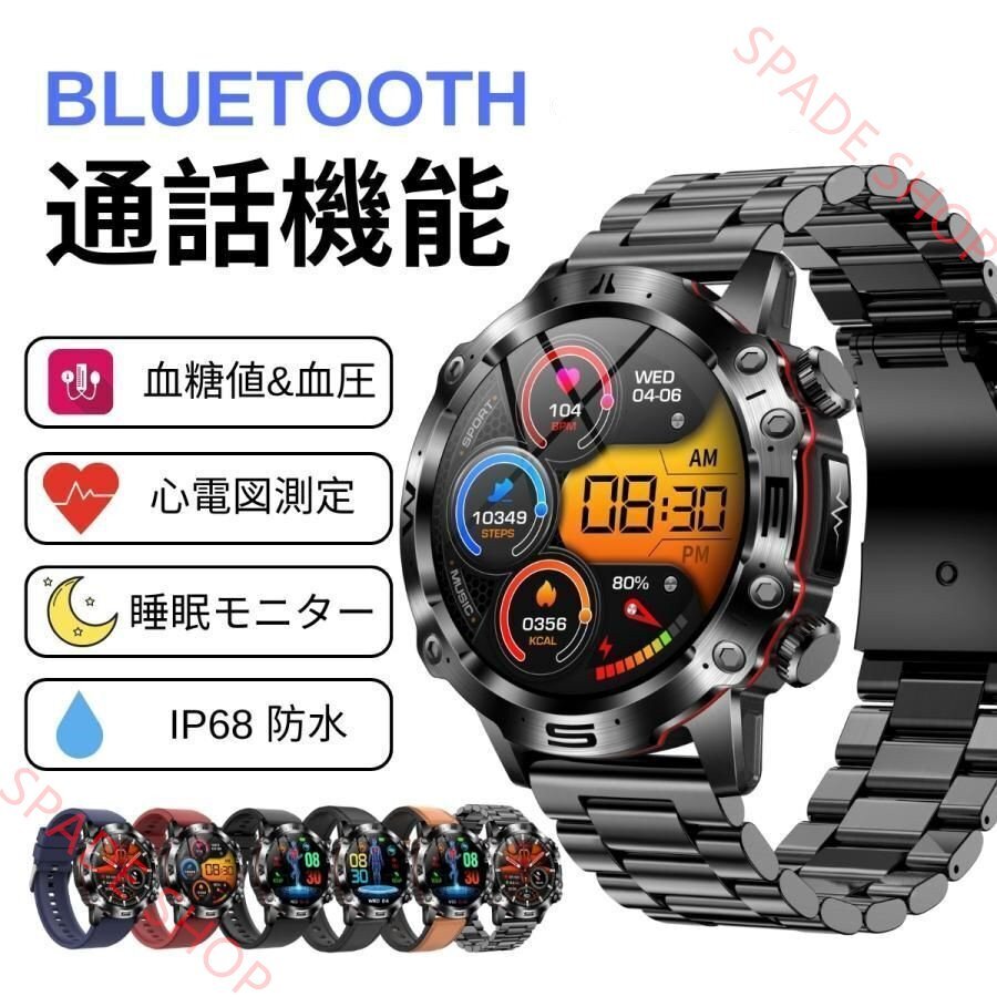 - スマートウォッチ 日本製 センサー 通話機能 血糖値 心電図 血圧測定 体温測定 iphone/アンドロイド対応 レディース メンズ キッズ 腕時計