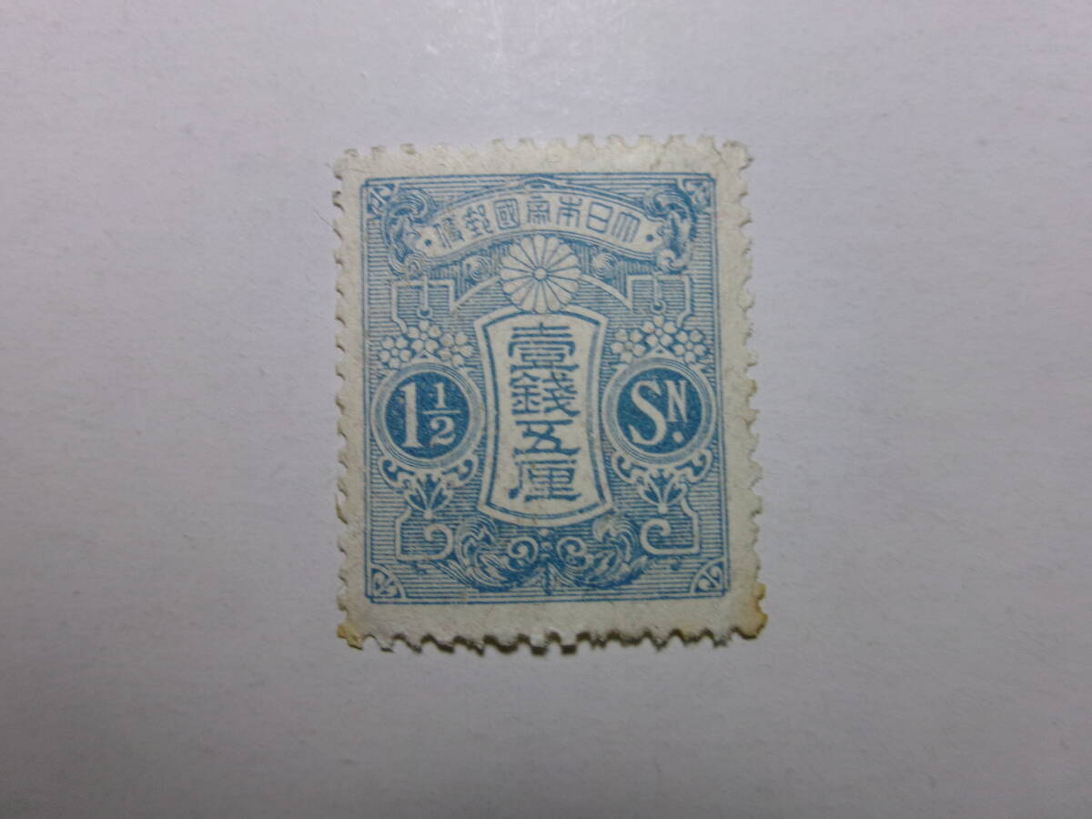 - 田沢切手 新大正毛紙 1銭5厘 平面版 汚れ 未使用 黒-K
