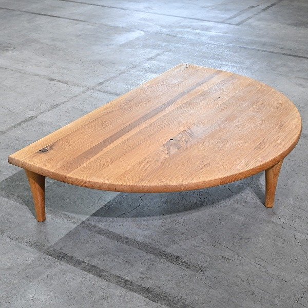 - 飛騨産業 21万「森のことば」半円形リビングテーブル センター オーク無垢材 ナラ ロー 佐々木敏光 机 和 ジャパンディ HIDA キツツキ